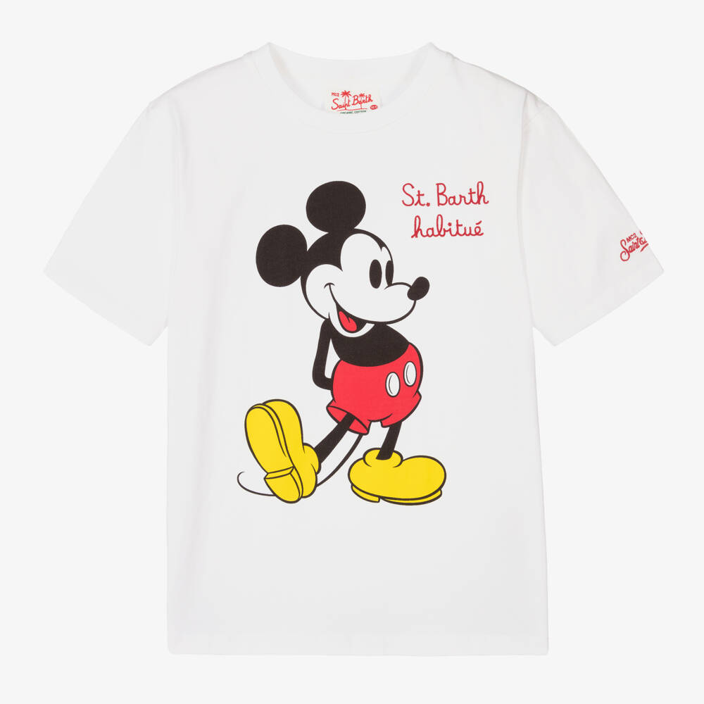 A classic white T-shirt for teen boys from Italian brand MC2 Saint Barth, with an infamous Mickey Mouse graphic print on the front. With a checked tab and Disney logo print on the back of the neck, this short-sleeved tee has the designer's logo embroidered on the front and on the sleeve. It is made from soft, organic cotton jersey for comfortable wear.