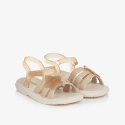 Fun pink jelly sandals for girls by Mini Melissa made from the brand's signature sweet scented Melflex rubber. In collaboration with Disney, they feature Mickey and Minne Mouse motifs on the front. They fasten with a velcro strap across the foot and have a flexible studded outer sole for improved grip on slippery surfaces.