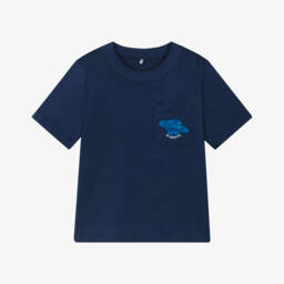 Charcoal grey T-shirt for boys by Mini Rodini, with a white sailing boat pattern. This casual short-sleeved tee is made in soft and comfortable organic cotton jersey.