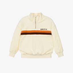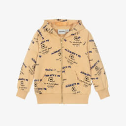 Cool bright blue track top for girls by Mini Rodini, made in silky lightweight material. This sporty top has a brushed inside and hood for warmth and comfort. Contrasting yellow stripes on the arms give an added pop of colour and the brand name is embroidered in tonal thread on the chest for a subtle designer finish.