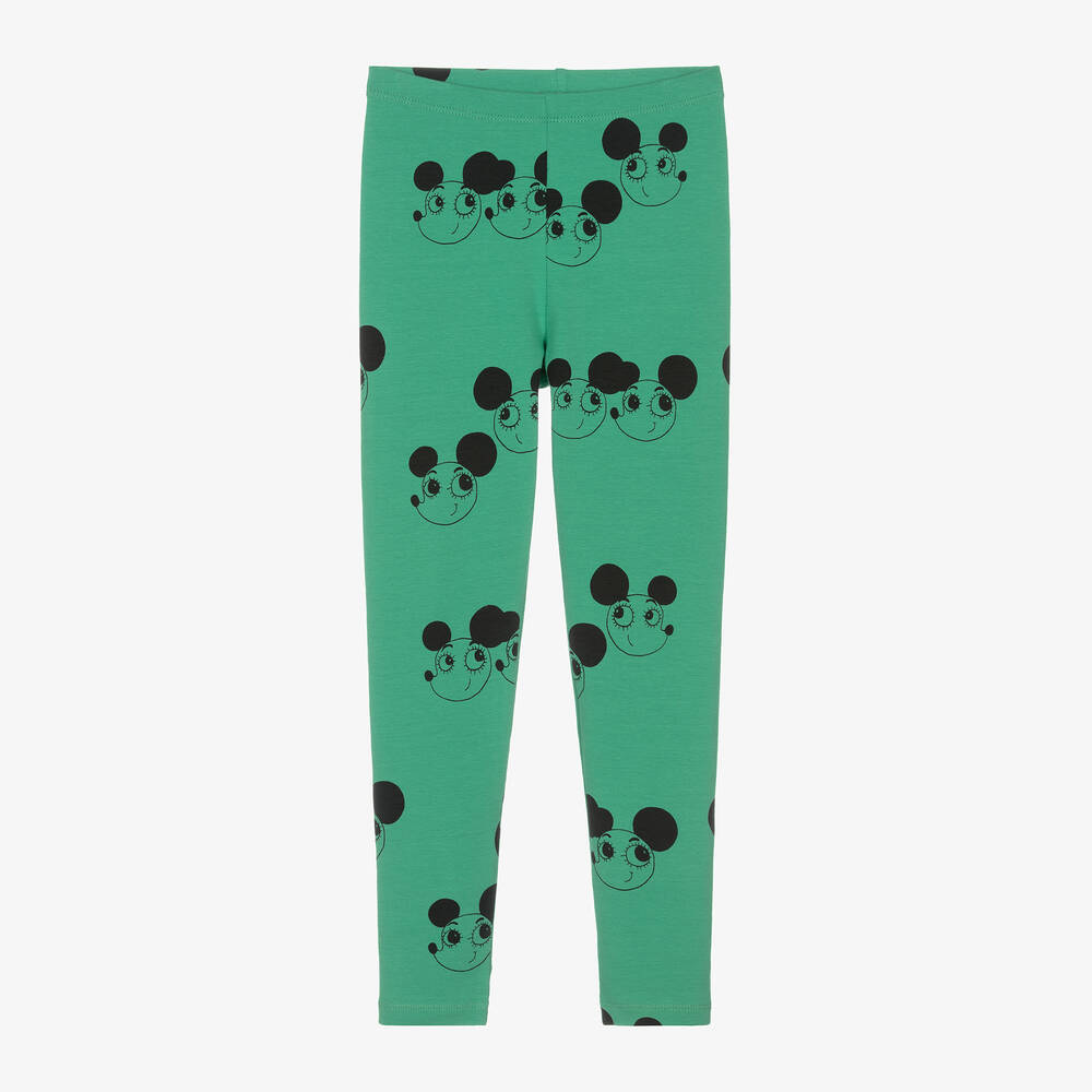 Full length, these green leggings for boys and girls are by Swedish brand Mini Rodini. Made from soft and stretchy organic cotton jersey, this eco-friendly product features a signature Ritzratz print in black. They have an elasticated waistband for easy, comfortable wear.