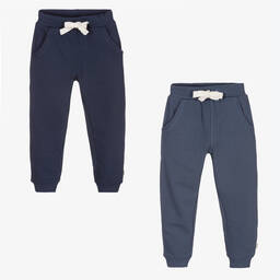 Pack of two pairs of joggers for boys and girls by Danish designer Minymo, with a logo tab on one side seam. One black, one grey marl, they are made in soft cotton jersey with a super soft fleecy inside. They have a useful ivory drawstring waistband and jetted side pockets.