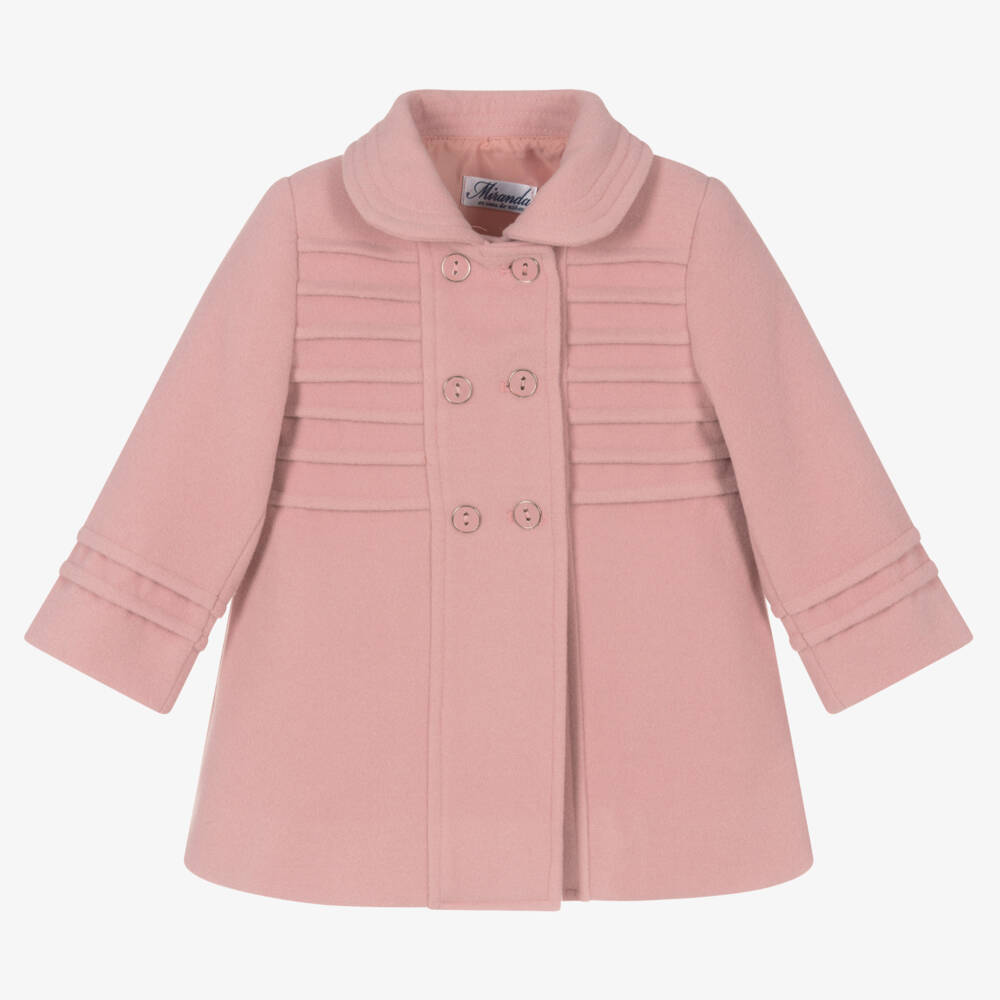 A beautiful traditionally-styled felted coat for little girls by Spanish brand Miranda. It has elegant pintuck detailing and classic double-breasted button fastenings on the front. Cosy and warm, it has a luxurious soft wool feel and a silky soft lining. It is vented on the back for comfort and ease of movement.