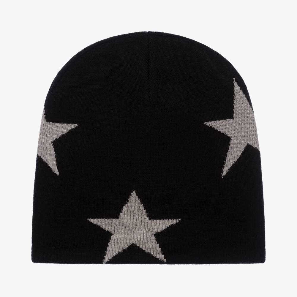 Boys and girls grey wool hat by Danish brand Molo, knitted from a super soft wool acrylic blend. Lined with warm grey fleece, it has a cute grey star pattern.