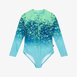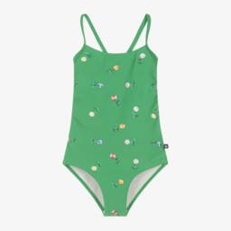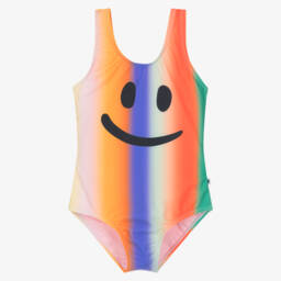 Girls black swimsuit by Molo, with a gorgeous, colourful leopard and jungle print and a UPF50+ rating. Super soft and silky, it has cross-over shoulder straps and is fully lined for comfort.