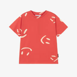 تيشيرت بيج للأولاد من مولو، مصنوع من قطن عضوي ناعم. يتميز بتصميم كاجوال مع طبعة مرحة لوجوه مبتسمة بلون بيج متباين.