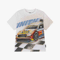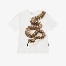 White T-shirt for teen boys and girls by Molo, bringing happy vibes to your teen's casual collection. Printed with a black smiling face on the front for a graphic look, it is made in soft organic cotton jersey for relaxed comfort.
