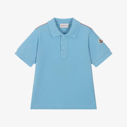 A charming blue polo shirt for little boys by Moncler Enfant, made in soft cotton piqué. It features contrasting white trims and an adorable bear motif on the chest. Branded poppers on the front placket offer a signature detail, while the iconic felt logo on one sleeve provides a distinctive designer finish.