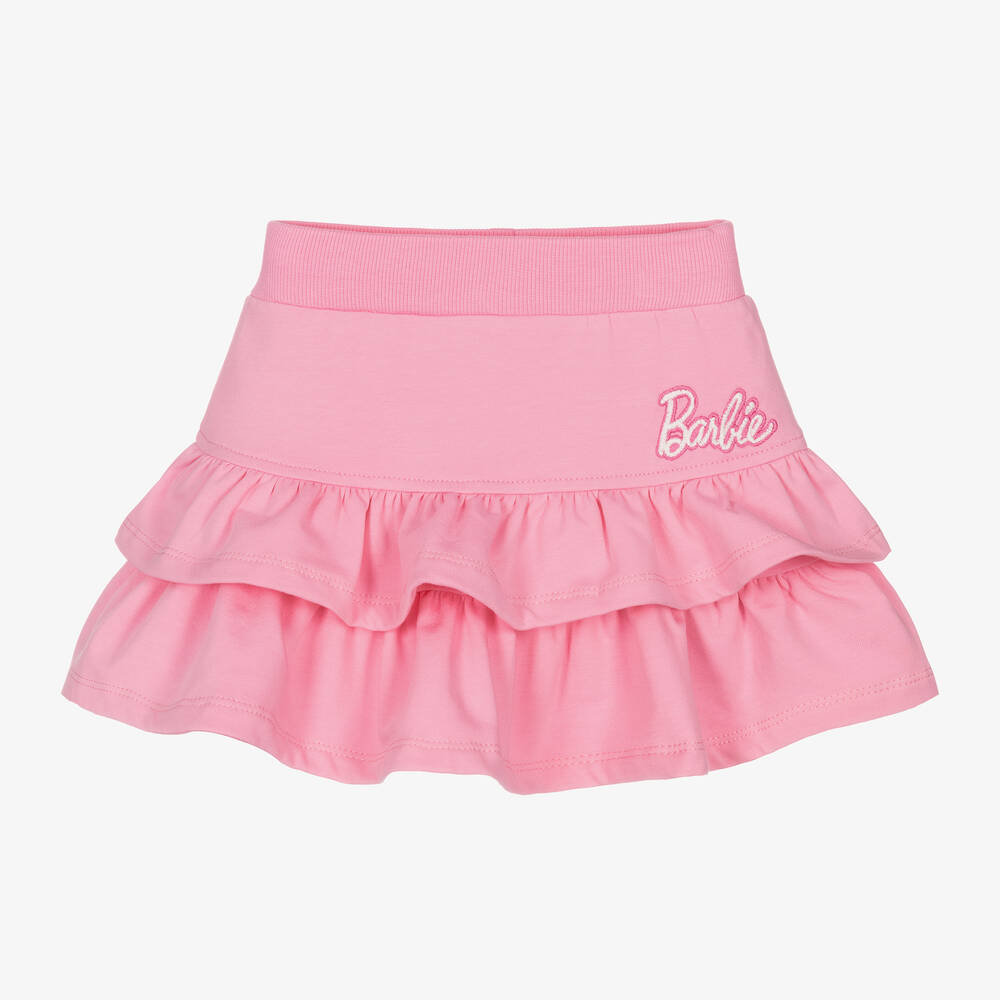تنورة بشعار باربي قطن مزينة بكشكش لون زهري