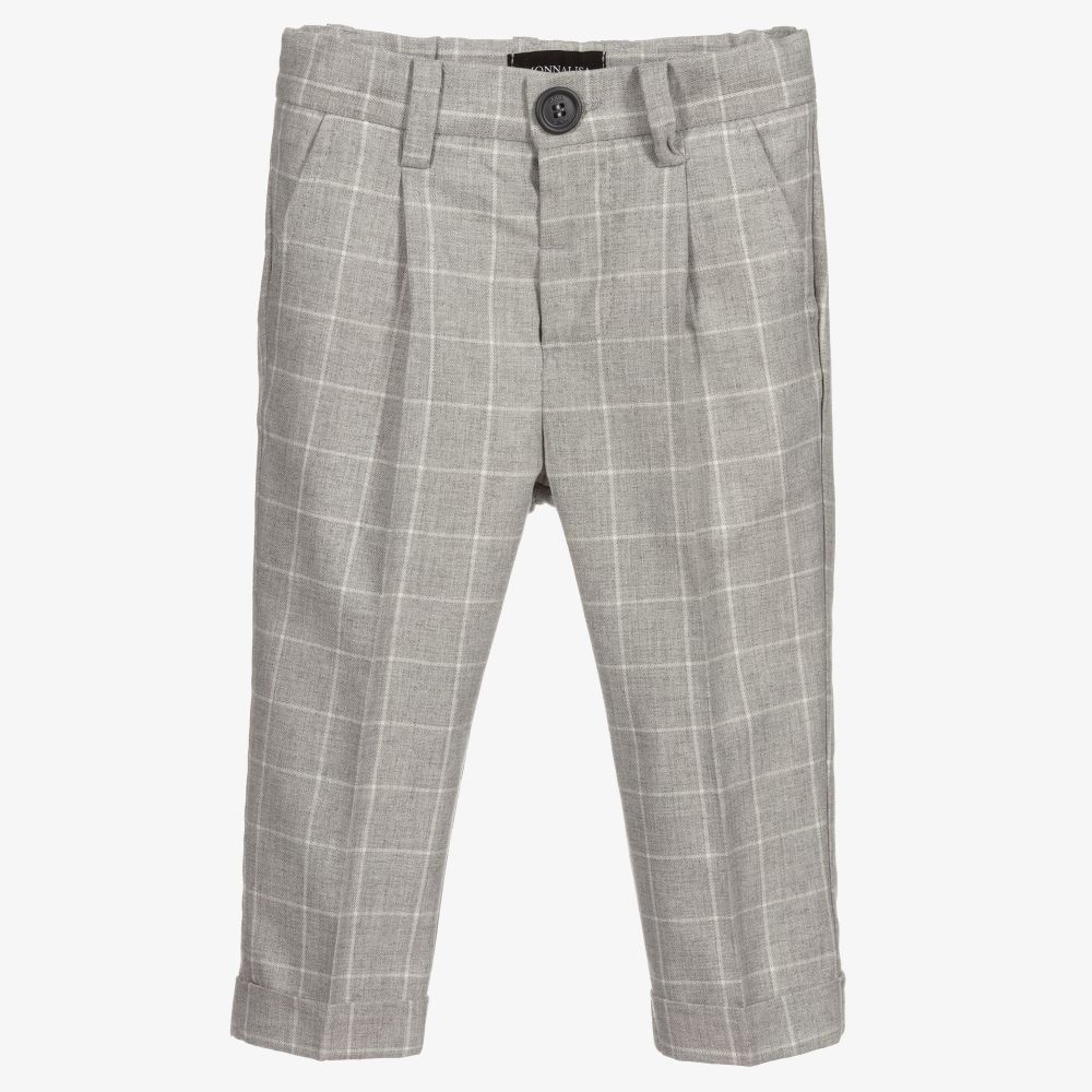 بنطلون أطفال ولادي مزيج قطن كاروهات لون رمادي