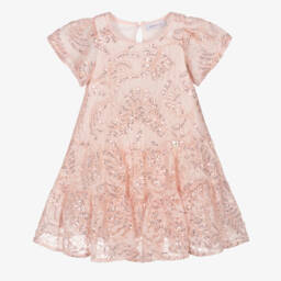 Girls lovely ivory dress by Monnalisa, with pretty ruffled trims by the sleeves and on the back. Smooth with a slight stretch, the front has a beautiful, oversized green and beige Disney© Bambi print. Made in soft viscose jersey at the back and sleeves, it is soft and comfortable.
