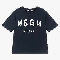 Black short-sleeved Mini-me T-shirt for boys and girls by MSGM, made from super soft cotton jersey. In a casual crew neck style, this top is printed with the brand's signature MSGM Milano logo in white for a stand-out look.