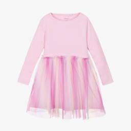 A mid-blue denim dress for older girls by NAME IT, designed in a relaxed, A-line silhouette for comfortable movement. With a washed and worn look, it is ideal for everyday wear and styled with patch pockets on the chest and a half-zip fastening on the front. The long sleeves have popper-fastening cuffs.