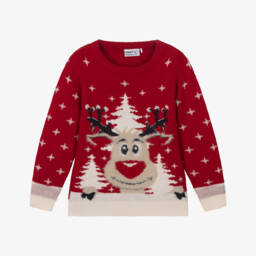 بلوفر للكريسماس لون أحمر من NAME IT للأولاد والبنات، يتميّز بتصميم مرح لحيوان الرنّة المحبوك بملمس ناعم ومنفوش وسط مشهد شتوي مغطى بالثلوج. مصنوع من نسيج محبوك سميك يوفر دفئًا وراحة مثالية في الأجواء الباردة، مع ياقة مستديرة وحواف مضلعة تمنح إحساسًا مريحًا ودافئًا.