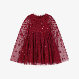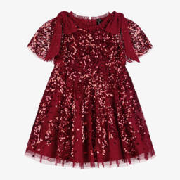 Beautiful ivory special occasion dress for girls by luxury designer Needle & Thread, made from fine, floral embroidered tulle, with intricate sequin detailing. This graceful style has elegant chiffon frills and sheer flutter sleeves. It is fully lined for comfort and fastens neatly with a concealed zip on the back.