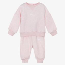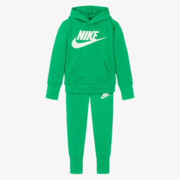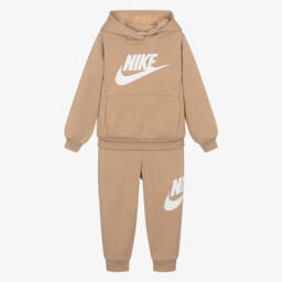 Navy blue tracksuit for younger boys and girls by Nike, made in soft jersey with Dri-FIT technology to move sweat away from the skin. Both pieces feature the brands signature Swoosh logos in white, with branded taping along the sleeves and legs for a sporty look. The zip-up top has a cosy hood and useful front pockets. whilst the joggers have a comfortable elasticated waistband.