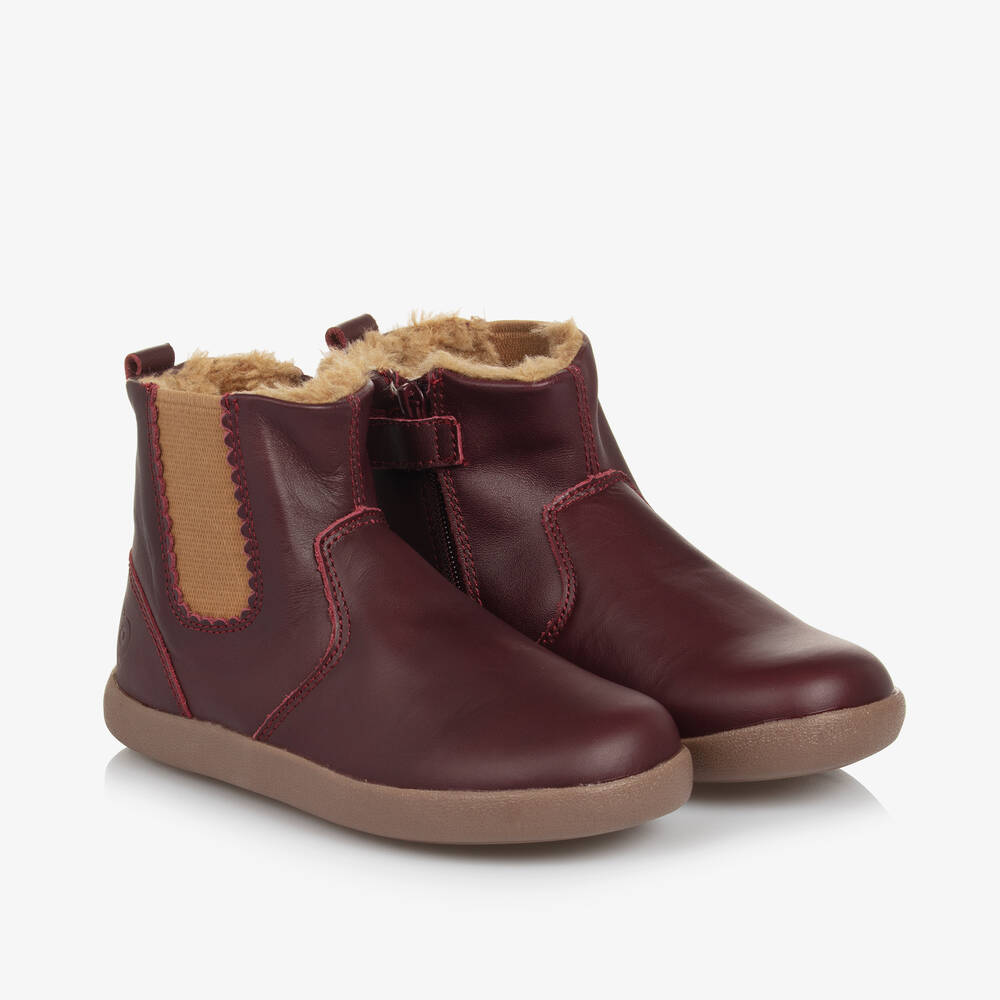 Dark red leather boots for girls by Old Soles, with a cosy faux fur lining and a useful side zip fastening. Soft and supple, they have an elasticated panel on one side for comfort and style, with pull-on tabs for easy dressing. Designed to be lightweight, these podiatrist-approved boots are breathable and have antibacterial, cushioned insoles. Allowing young feet to move naturally, they have flexible, non-slip rubber soles.