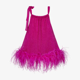 فستان رائع للمناسبات والحفلات، يتميز بلونه الفوشيا الزاهي والمصمم خصيصًا للبنات من ماركة Oséree. مصنوع من قماش لوميير الذي يمنح توهجًا رائعًا تحت الضوء، ومزين بالريش المتناغم لإطلالة فاخرة. إحدى حمالات الكتف تُربط على شكل فيونكة لإضفاء لمسة نهائية جميلة.