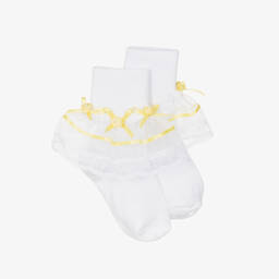 These navy blue socks for younger girls by Patachou, offer a charming touch to any outfit. Made in a soft and stretchy cotton blend for comfort, each sock is adorned with a delightful tartan bow on the side, adding a classic touch.