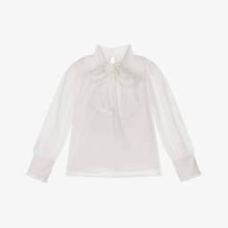 Exclusive to Childrensalon, this pale pink blouse for girls is designed by Patachou. Floaty and elegant, it is made in luxuriously soft chiffon and has a lightweight cotton lining for comfort. The tiered sleeves and ruffle neckline add a feminine touch to this look. The style is finished with button fastenings on the back.