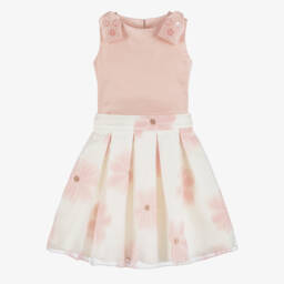 طقم تنورة قطن لون أبيض للبنات