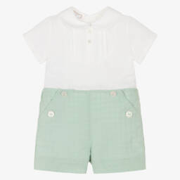 بدلة رسمية قطن لون أخضر وعاجي للمواليد