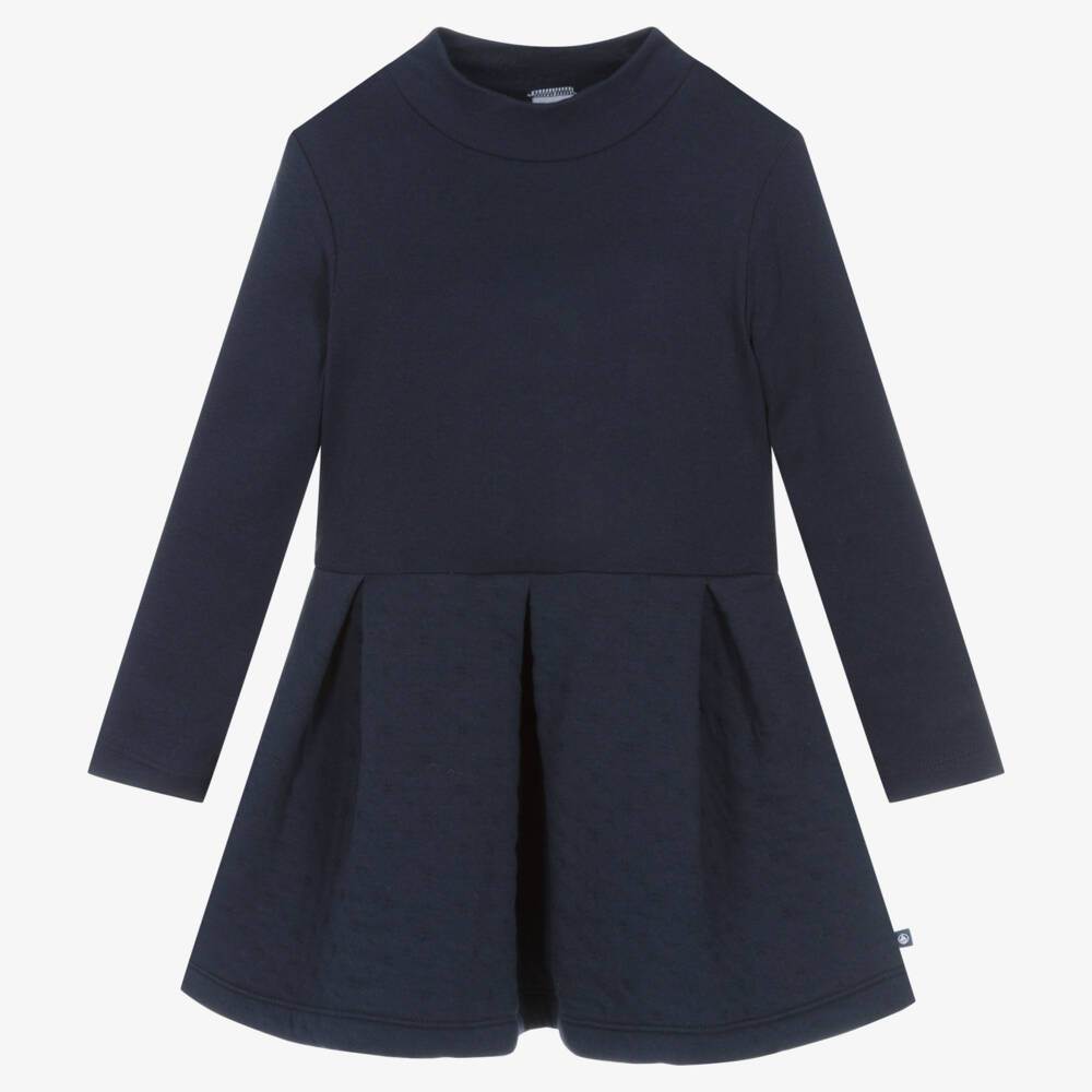 Simple yet elegant, this navy blue skater dress for girls is by Petit Bateau. Made in soft and comfortable cotton, the bodice is made in lightweight jersey, whilst the skirt is in thicker double jersey. There is a high neckline and a pleated skirt, for a fun and feminine look.
