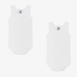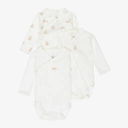 White wrap-over bodyvests for baby boys and girls by Petit Bateau, in a useful pack of five. Made in beautifully soft organic cotton jersey, two are plain white and the other three are subtly printed with sweet motifs on the chest. Gentle on the skin, they fasten with poppers on the side and between the legs to help with dressing and changing.