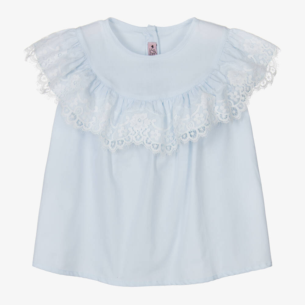 بلوز قطن ودانتيل لون أزرق للبنات