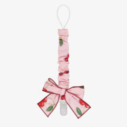 Adding a pretty yet practical finishing touch, this yellow dummy clip for baby girls is by Phi Clothing. Stretchy with a lovely pink floral print, it has a sweet bow and attaches with a clip. Easy to use, simply loop the dummy onto the white strap.