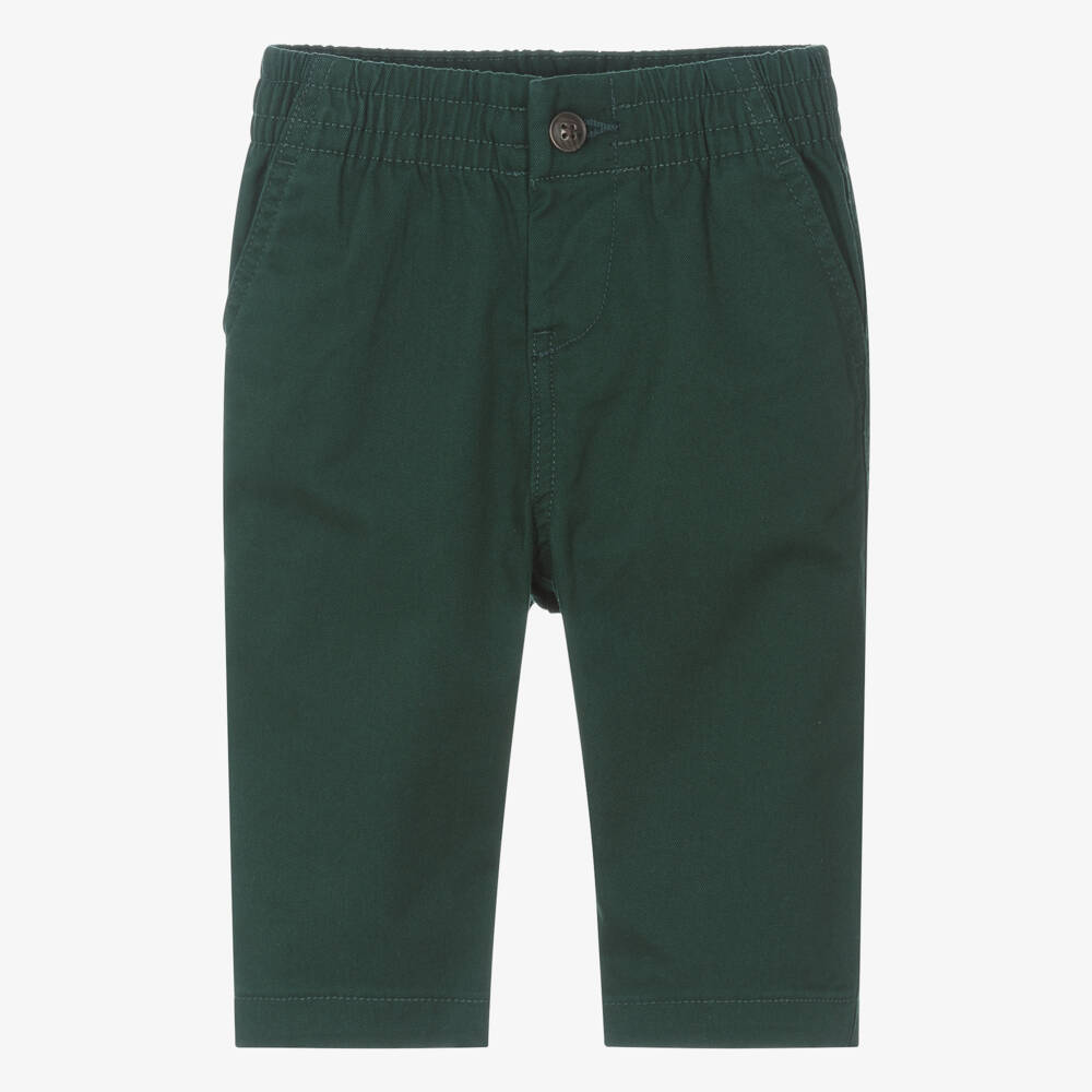 بنطلون تشينو قطن تويل لون أخضر داكن للمواليد