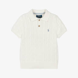 Bright yellow polo shirt for baby boys by Ralph Lauren, made in soft cotton piqué. Classically styled with a ribbed collar and button fastenings, this casual top has a split hem and a navy blue pony logo embroidered on the chest for a signature finish.