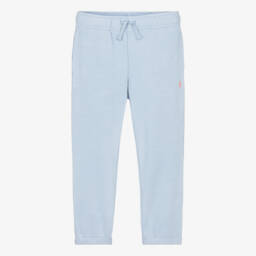 Blue, Ralph Lauren joggers for boys made in mid-weight cotton-blend jersey. Soft and comfortable, this casual style has an elasticated drawstring waist, side seam pockets and a further patch pocket on the back. They are embroidered with a navy blue logo on the front for a signature touch.