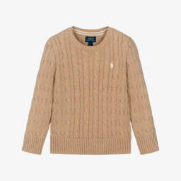 بلوفر بولو بير قطن لون عاجي للأولاد