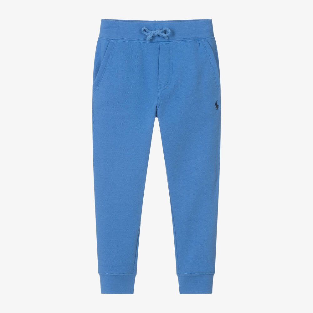 Casual and comfortable for boys, these light blue cotton-blend joggers are by Ralph Lauren. Made in soft jersey with a cosy fleecy inside, they have an elasticated drawstring waist and slanted front pockets. The designer's signature pony logo embroidered on one side in contrasting blue.