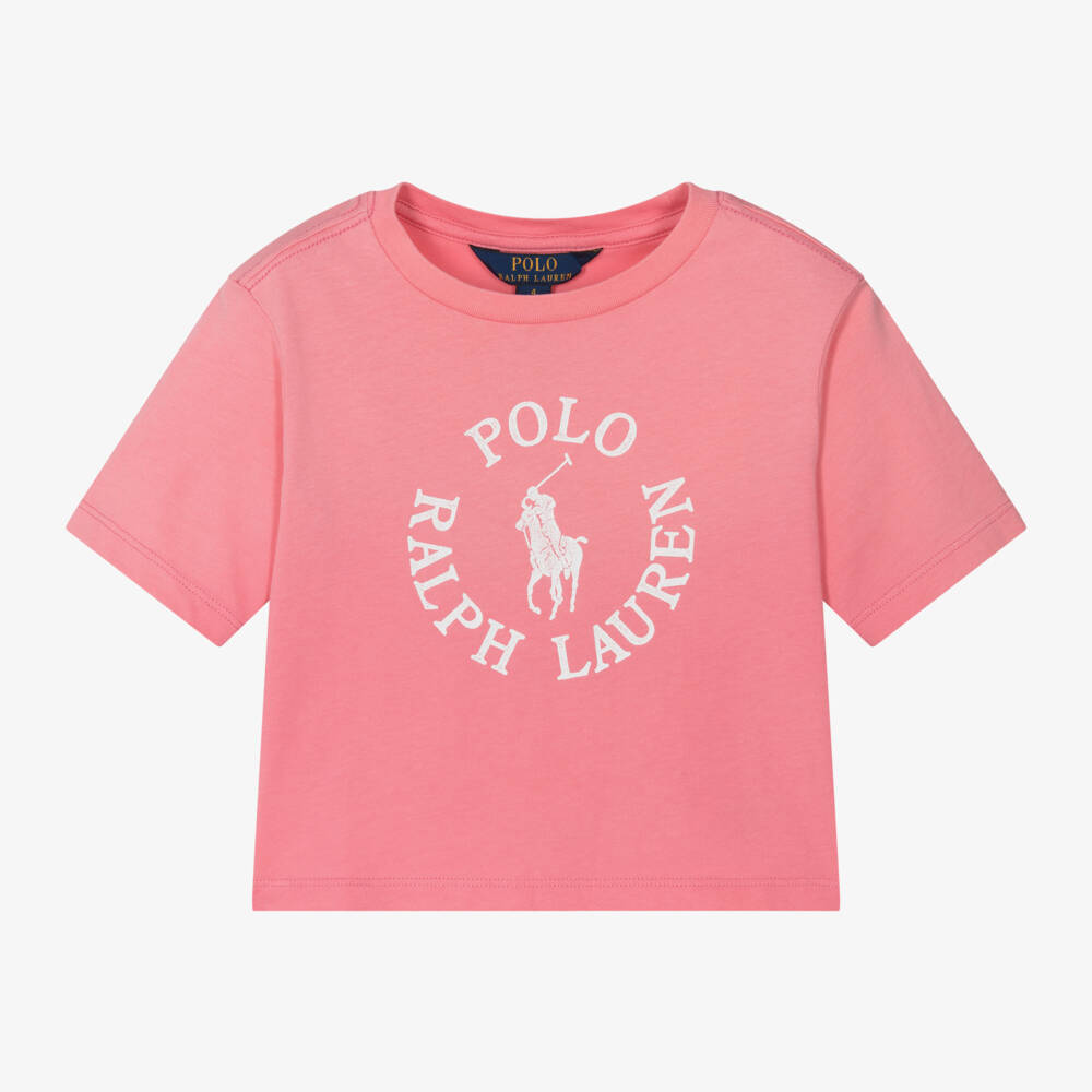 A casual boxy-fit short-sleeved T-shirt for girls by Ralph Lauren, in a lovely shade of pink. Made from soft cotton jersey, it is printed with a white Big Pony logo design on the chest for an instantly recognisable look.