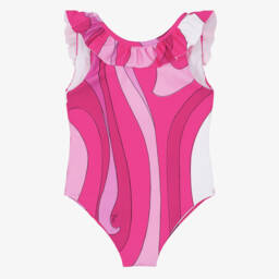 Older girls yellow and blue swimsuit by Ralph Lauren, designed with a vibrant Italian Riviera print. Made in silky smooth and stretchy fabric, it features a high elasticated neckline and cross-back straps. Comfortably lined, this one-piece swimsuit combines style and comfort for beach days and poolside lounging.