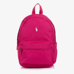 A spacious green backpack for boys and girls by Ralph Lauren, made in durable canvas. It has a zip-fastening main compartment, with a wipe-clean lining and an useful internal laptop sleeve. There is an external zipped pocket on the front and a useful water bottle pocket on one side. Ideal for use as a school bag, it has padded, adjustable shoulder straps, with a buckle-fastening chest strap for extra support. Designer touches include logo-embossed zip pullers and the brand's signature pony logo embroidered on the front in red.