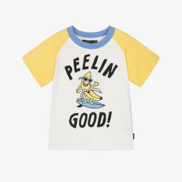 A festive red T-shirt for boys and girls by Rock Your Baby, featuring a fun Santa face and the words, 'Don't Stop Believing'. It is made in soft cotton jersey with short sleeves and ribbed trims.