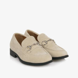 In a smart-casual style, these backless black loafers for boys and girls are by British brand Romano. Made and lined in soft faux leather, these slip-on shoes have a gold horsebit detail across the toes and a smooth rubberised outsole.