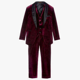 طقم صدرية و ربطة عنق لون برغندي للأولاد