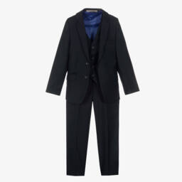 An elegant three piece navy blue suit for boys by Romano. Made from a soft, mid-weight viscose blend, the smart waistcoat gives a smart look to accompany the trousers and jacket. For a comfortable fit, the trousers have an elasticated waist on the smaller sizes and an adjustable waist on the larger sizes. The wide age range available makes it perfect for pageboys.