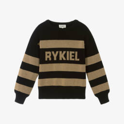 Fun and colourful jumper for girls by Sonia Rykiel Paris, inspired by the adult collection. Ivory, pastel pink and yellow stripes are incorporated into the beautiful knit with textured stripes and vibrant neon pink accents for a cool look. A bold intarsia logo can be seen on the front.