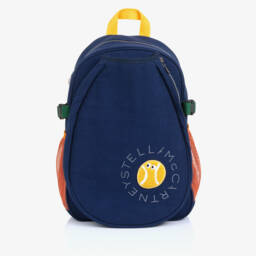 Ivory backpack for girls by Stella McCartney Kids, patterned with bright red strawberries. Fastening with branded zips, this practical design has a spacious main compartment and a smaller front pocket. It has adjustable shoulder straps and varsity-style appliqués on the front with textured bouclé detailing.