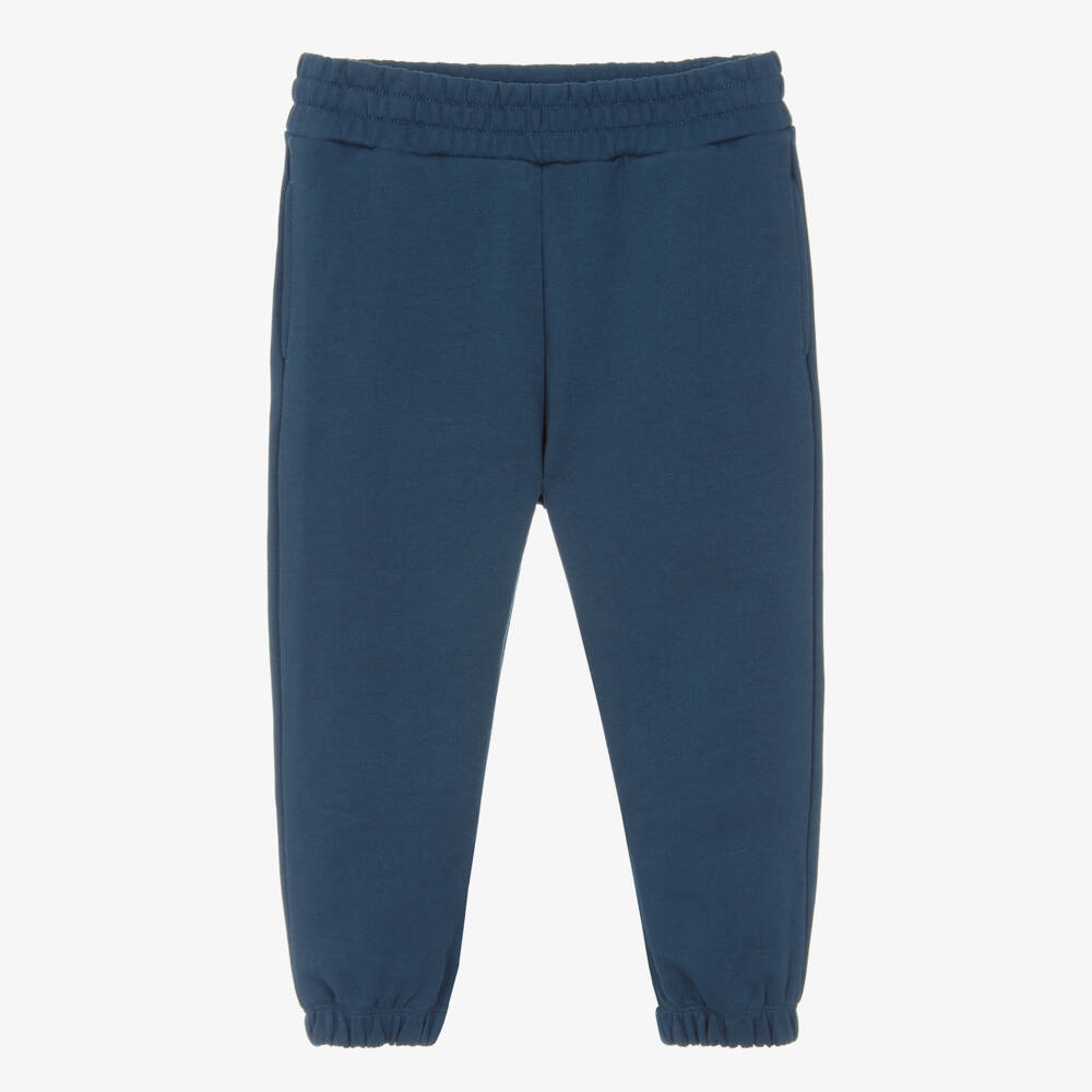 Navy blue joggers for boys and girls by Stella McCartney Kids, made from soft organic cotton jersey. A casual wardrobe staple, these cuffed joggers have an elasticated waist with three-pocket styling. They have a bold white circular logo printed on the back. The Stella McCartney fit can be quite small so choose a size up if you want room to grow.