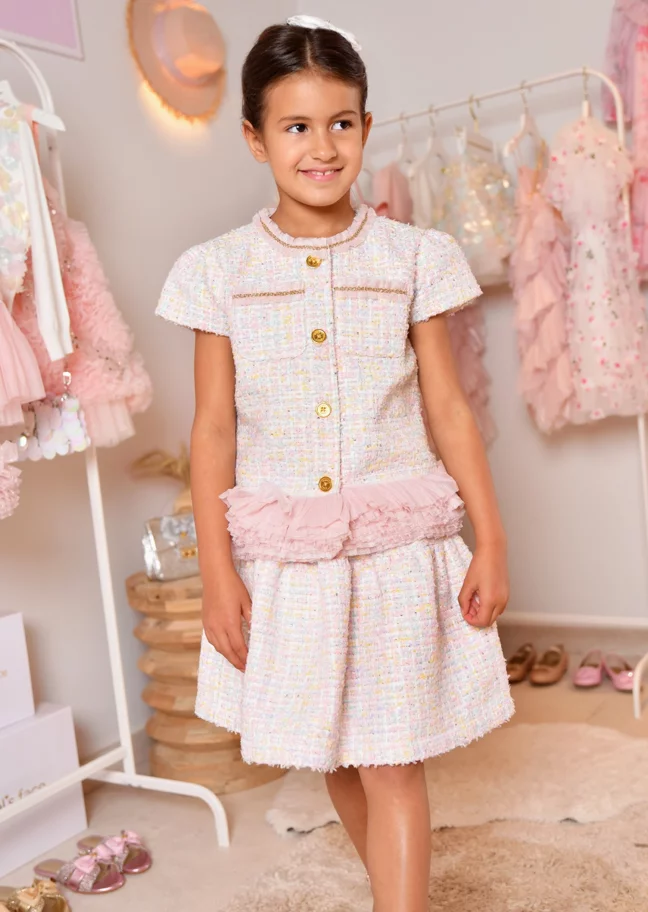 Angel's Face-جاكيت تويد مزين بتول لون زهري للبنات | Childrensalon