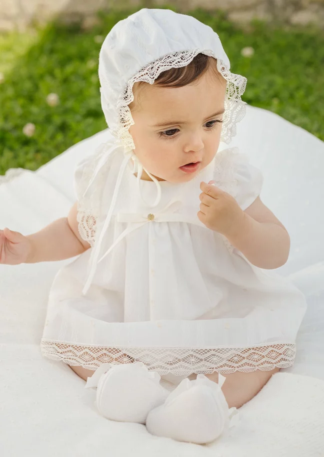 Mebi-طقم أفارول بيبي غرو وبونيه قطن محبوك لون عاجي | ChildrensalonMebi
