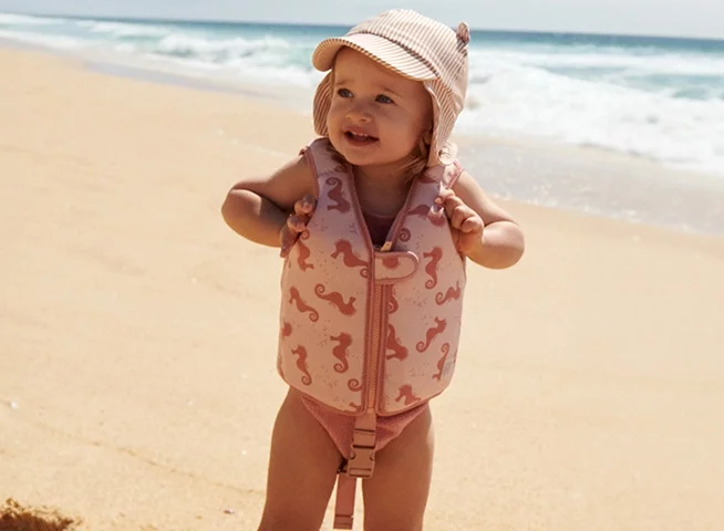 إذا كان طفلك من عشاق الركل في المياه، فإن بدلة الطفو أو سترة الطفو ستساعده على بناء الثقة بالنفس وستمنحكم أيضا راحة البال. ولدينا الكثير من بدلات الطفو والعوامات المصنوعة من خامات توفر عامل حماية +UPF50، لحماية الصغار من الشمس. تذكروا أن الأطفال والرضع يجب أن يبقوا تحت المراقبة طوال الوقت في المياه أو بالقرب منها، حتى لو كانوا يرتدون بدلات طفو أو عوامات الذراع. ومن المهم أيضا أن تكون تجارب السباحة الأولى ودروس السباحة في نفس الوقت، ليتعلم الصغير الفرق بين التواجد في الماء مع العوامات وبدونها.