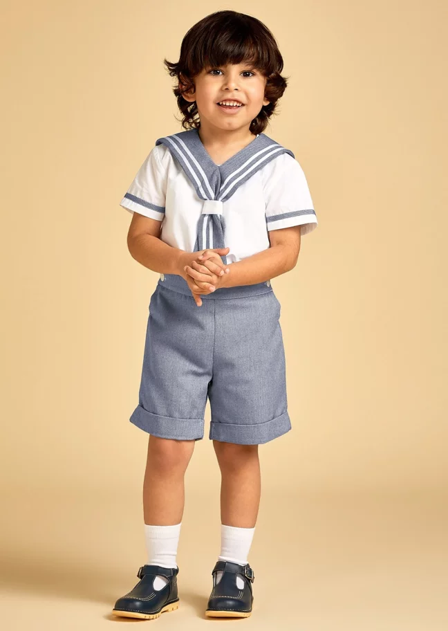 Mebi-طقم شورت قطن وكتان لون بيج للأولاد | ChildrensalonMebi