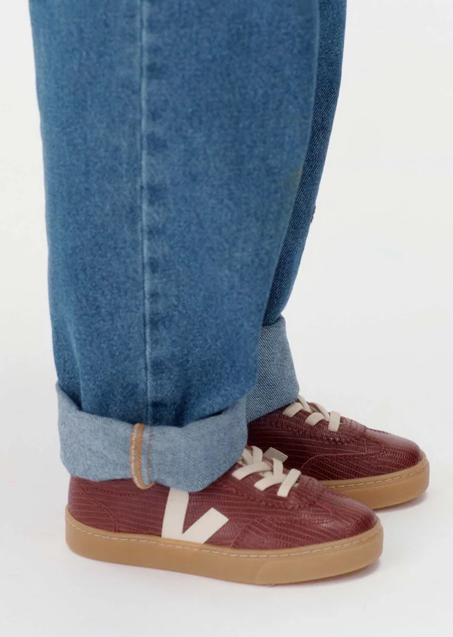 For the canvas and laces, Brazilian and Peruvian organic cotton is used, grown by farmers' associations in Brazil and Peru who harvest it with respect for people and the environment. And on the all-important durable soles you'll find Amazonian rubber, which is sourced responsibly, with VEJA buying the product at 3.5 time the market price, helping to improve the living conditions of the rubber tappers and fund the ongoing efforts to protect the Amazonian forest. Happy feet, happy kids, happy planet!